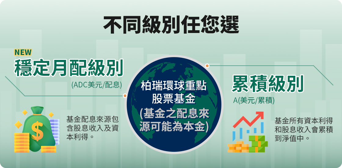 柏瑞環球重點股票基金(基金之配息來源可能為本金) 多元級別,靈活挑選