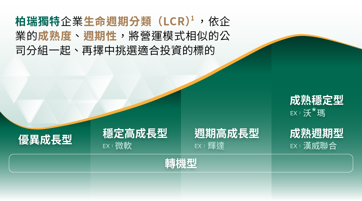 資料來源:柏瑞投資,1:LCR是指企業生命週期分類研究(Lifecycle Categorization Research)。2025/12/31,列舉之個股為前十大持股,上述內部策略流程可能隨市況改變,本公司不另行通知。