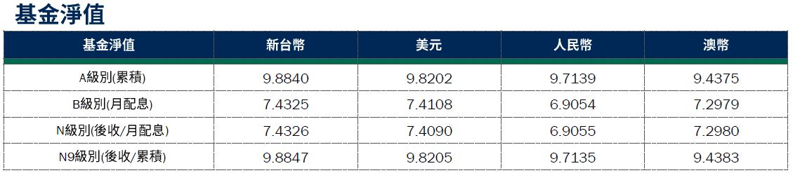 後市展望:川普政府關稅政策頻出,且聯邦政府裁減人事亦對於就業數據形成壓力,對全球經濟成長的擔憂帶動市場避險情緒升溫,近期全球公債殖利率大幅下滑。短期全球公債殖利率走勢料偏向區間震盪,基金將在波動中適度調整存續期間配置,以期在各區域/國家輪動中掌握投資機會。