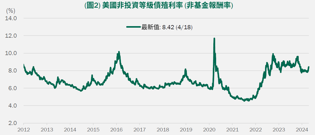 •截至2024年3月底,整體非投資級債券違約率仍低於10年均值,且企業獲利表現小幅上揚,反映非投資級企業基本面在高利率環境下仍頗具韌性。