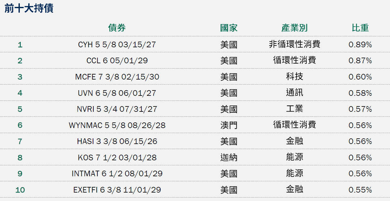•偏好產業:看好非循環性消費、能源、非循環性消費存續期間:存續期間保持中性,目前3.43年
