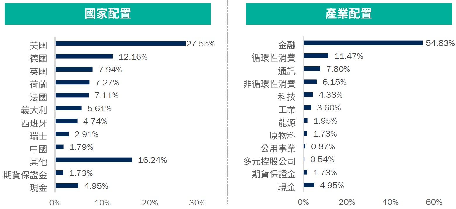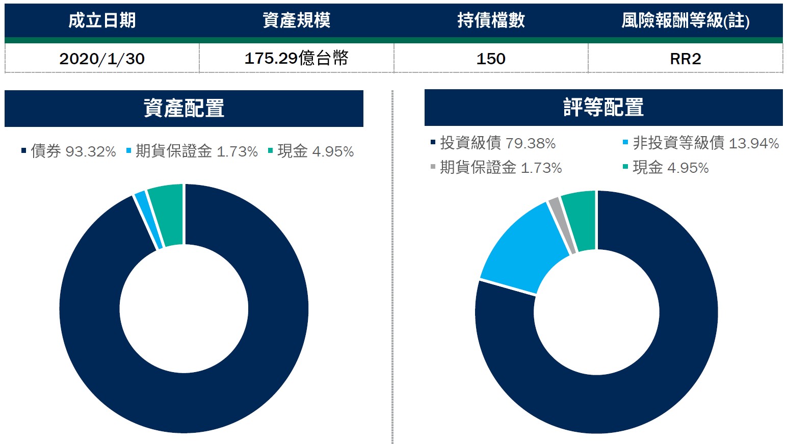 資料來源:柏瑞投信,2025/9/19。現金部位中可能含期貨保證金及國庫券。配置會隨市況而改變,本公司不另行通知。非投資等級債仍有相關風險。基金雖有避險策略,但不代表能完全規避此類匯價波動的風險,避險策略將視市況有所調整。投資人應留意衍生性工具/證券相關商品等槓桿投資策略所可能產生之投資風險,詳見公開說明書。(註):本基金主要投資於全球之投資等級債券,雖以兼顧信用評等優質債券投資機會與ESG投資目標,惟風險無法因分散投資而完全消除,遇相關風險時對基金淨資產價值可能產生較大波動,經計算本基金過去5年淨值波動度(成立未滿5年者,另參考成立以來淨值波動度至內部檢視日),並與同類型基金過去5年淨值波動度及波動度內部參考指數之過去5年波動度相較,爰參酌投信投顧公會「基金風險報酬等級分類標準」,本基金風險報酬等級屬RR2。風險報酬等級為本公司依照投信投顧公會「基金風險報酬等級分類標準」編製,該分類標準係計算過去5年基金淨值波動度標準差,以標準差區間予以分類等級,分類為RR1-RR5五級,數字越大代表風險越高。此等級分類係基於一般市場狀況反映市場價格波動風險,無法涵蓋所有風險(如:基金計價幣別匯率風險、投資標的產業風險、信用風險、利率風險、流動性風險等),不宜作為投資唯一依據,投資人仍應注意所投資基金個別的風險。請投資人注意申購基金前應詳閱公開說明書,充分評估基金投資特性與風險,更多基金評估之相關資料(如年化標準差、Alpha、Beta及Sharpe值等)可至投信投顧公會網站之「基金績效及評估指標查詢專區」(https://www.sitca.org.tw/index_pc.aspx )查詢。投資人申購本基金係持有基金受益憑證,而非本文提及之投資資產或標的。