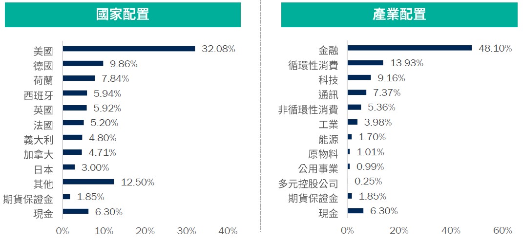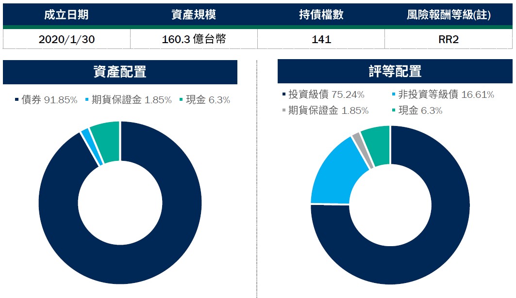 資料來源:柏瑞投信,2026/1/23。現金部位中可能含期貨保證金及國庫券。配置會隨市況而改變,本公司不另行通知。非投資等級債仍有相關風險。基金雖有避險策略,但不代表能完全規避此類匯價波動的風險,避險策略將視市況有所調整。投資人應留意衍生性工具/證券相關商品等槓桿投資策略所可能產生之投資風險,詳見公開說明書。(註):本基金主要投資於全球之投資等級債券,雖以兼顧信用評等優質債券投資機會與ESG投資目標,惟風險無法因分散投資而完全消除,遇相關風險時對基金淨資產價值可能產生較大波動,經計算本基金過去5年淨值波動度(成立未滿5年者,另參考成立以來淨值波動度至內部檢視日),並與同類型基金過去5年淨值波動度及波動度內部參考指數之過去5年波動度相較,爰參酌投信投顧公會「基金風險報酬等級分類標準」,本基金風險報酬等級屬RR2。風險報酬等級為本公司依照投信投顧公會「基金風險報酬等級分類標準」編製,該分類標準係計算過去5年基金淨值波動度標準差,以標準差區間予以分類等級,分類為RR1-RR5五級,數字越大代表風險越高。此等級分類係基於一般市場狀況反映市場價格波動風險,無法涵蓋所有風險(如:基金計價幣別匯率風險、投資標的產業風險、信用風險、利率風險、流動性風險等),不宜作為投資唯一依據,投資人仍應注意所投資基金個別的風險。請投資人注意申購基金前應詳閱公開說明書,充分評估基金投資特性與風險,更多基金評估之相關資料(如年化標準差、Alpha、Beta及Sharpe值等)可至投信投顧公會網站之「基金績效及評估指標查詢專區」(https://www.sitca.org.tw/index_pc.aspx )查詢。投資人申購本基金係持有基金受益憑證,而非本文提及之投資資產或標的。