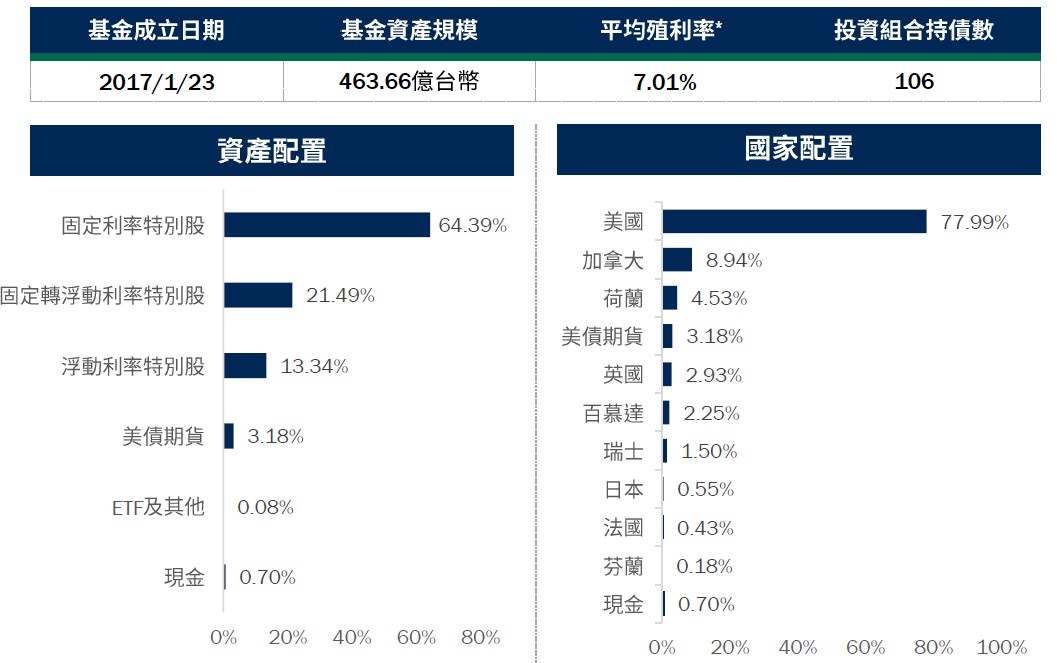 資產配置:整體投組配置不變,持續聚焦中長期投資價值較優的特別股,並伺機買進具吸引力之IPO證券。目前亦未投資與普通股連動程度較高的可轉換特別股,避免承受額外的市場波動風險。