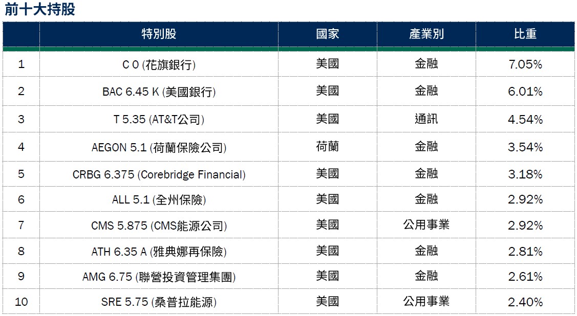 未來展望:在全球地緣衝突加劇、風險性資產面臨回檔之際,特別股因發行人多屬投資等級而具相對防禦性,惟後續表現仍需仰賴主動式的基本面篩選。本基金自成立以來,未持有以任何形式違約的投資標的,產業配置也相對市場常見的特別股指數分散,期可創造較佳之風險調整後表現。