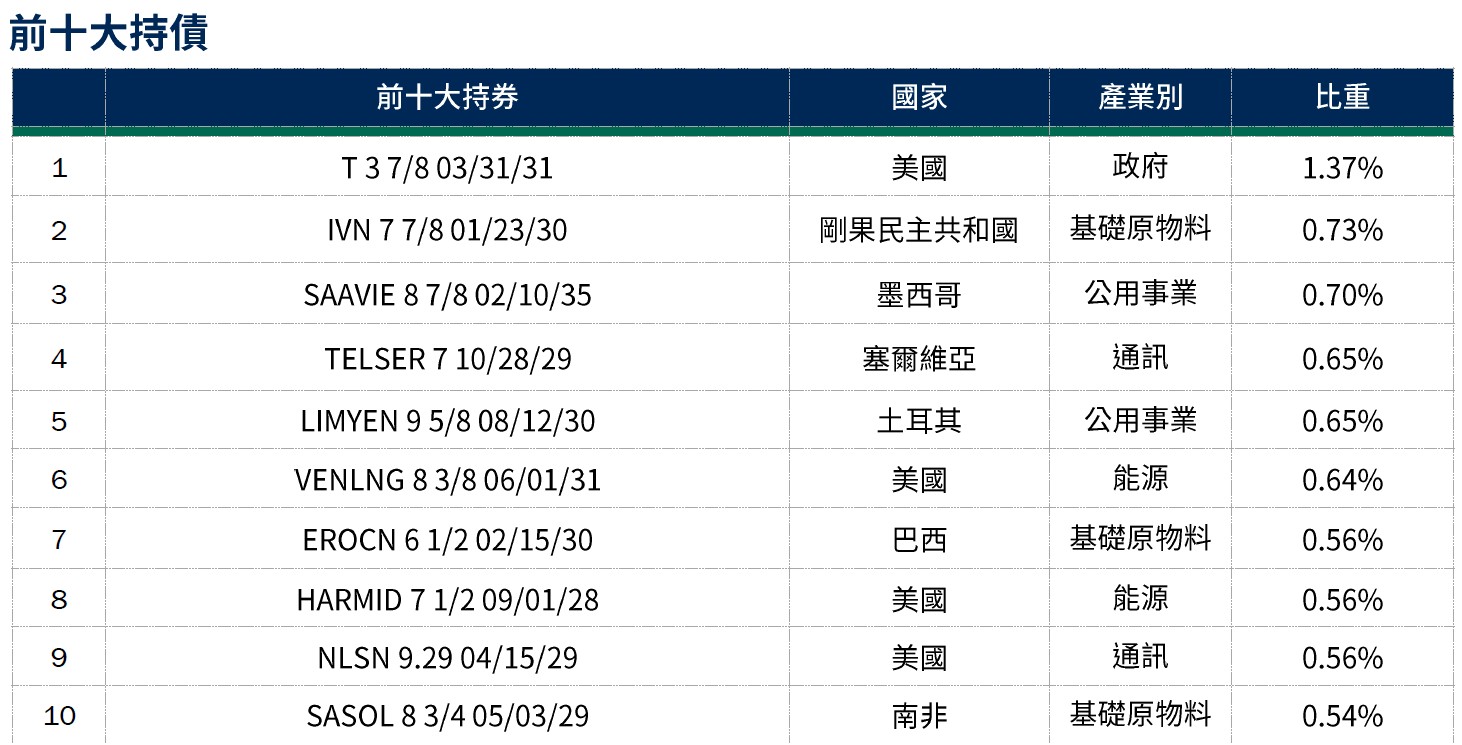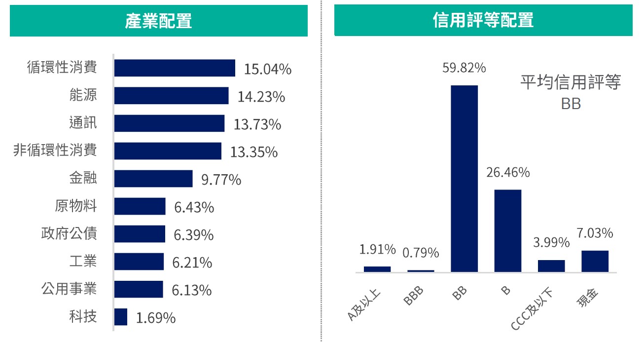 操作說明2:偏好循環性消費、能源、通訊產業;存續期間維持中性,目前3.57年;信用評等聚焦BB與B評級資產,平均信評維持BB。*(詳見第3頁註釋)