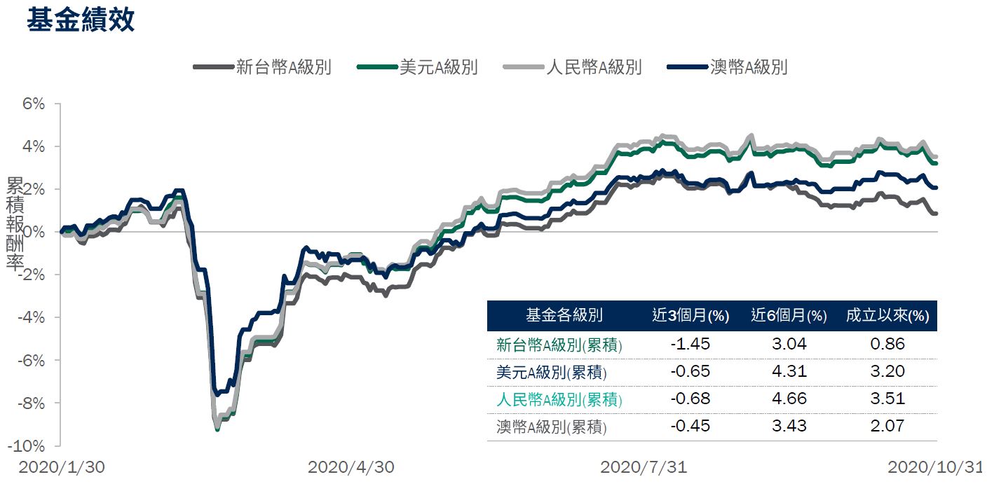 資料來源:Lipper,原幣計價報酬,2020/10/31。過去績效不代表未來收益之保證。