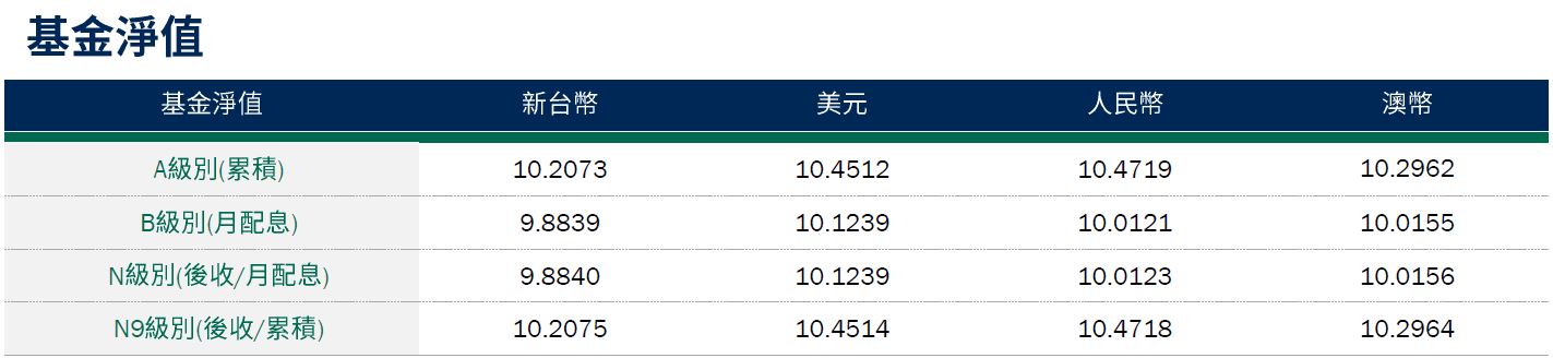 • 匯率避險(基金級別):截至11月6日,基金台幣級別避險比例為61.36%,人民幣級別避險比例87.83%,澳幣級別避險比例86.15%。