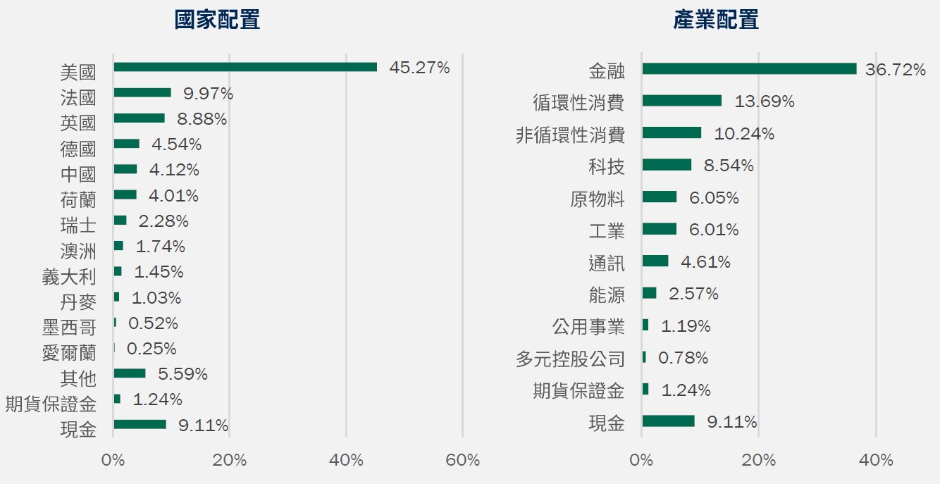 • 信用利差模組:模組預測較有機會利差收斂的債券,落於原物料、循環性消費及運輸等產業,因此本基金目前在此些產業相對加碼。