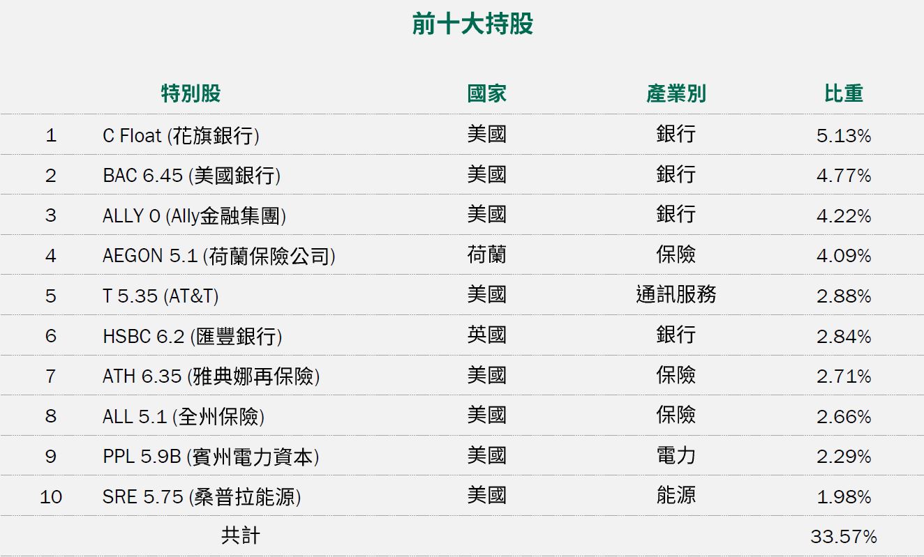 受惠於經濟復甦、提存的損失準備減少,銀行業第3季獲利衰退的幅度已明顯收窄,預期不會對特別股的股利發放造成太大影響,仍相對看好體質穩健的銀行、保險公司,以及現金流量能見度比較高的公用事業、通訊服務業;能源產業持股則相對較少,且皆配置於屬於中游的管線運輸,經營基本面相對較不受油價波動的直接衝擊。此外,由於新冠疫情對實體經濟的衝擊恐將持續一段時間,本基金在工業、循環消費等產業的配置相對保守,並偏好信用評等較好的標的。基金短期內將維持約5%~10%的現金水位,並持續關注市場的交易狀況,伺機參與優質特別股新發行的投資機會,以及布局高票息、基本面穩健等長期投資價值較優的特別股,為投資人布建長期上漲潛力較好的投資組合,同時兼顧風險控管。截至11月13日,本基金投資組合的殖利率*(詳見第3頁註釋)約5.8%,現金部位約10.1%;台幣級別避險比例65.19%,人民幣級別避險比例84.98%,澳幣級別避險比例80.96%。