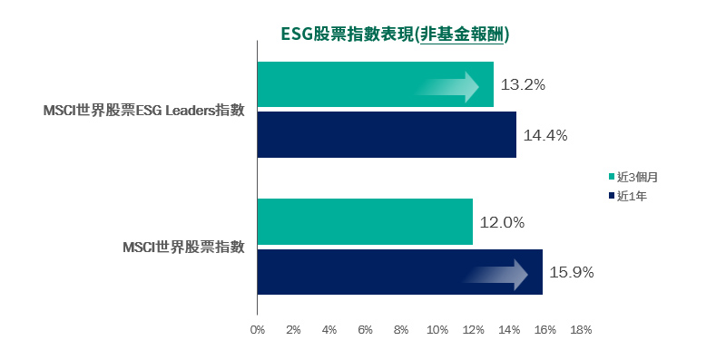 美國對各國關稅稅率已於8月完整出台,令市場不安情緒降低,近三個月不論是ESG Leaders指數或是世界股票指數皆雙雙上漲逾10%;長期來看,因川普的上任,故使美國大幅減少對新能源等ESG政策的支持,使市場投資情緒較為保守,以致ESG股票指數近一年小幅落後一般股票指數。
