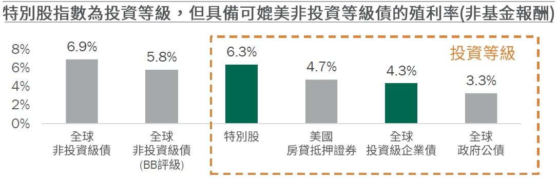 特別股信用體質接近投資等級,但因結構上具次順位特性,市場會要求較高收益補償,使其長期殖利率高於投資等級債約1–2%。