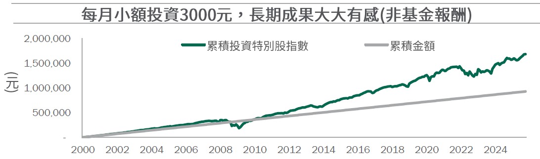 資料來源:Bloomberg,2000/1/1-2024/12/31。特別股以ICE BofA固定利率優先證券指數為參考,非本基金報酬指標。*計算方式皆為每月月底投資3,000元。本文提及之經濟走勢預測不必然代表本基金之績效,基金投資風險請詳閱公開說明書/投資人須知。投資人因不同時間進場,將有不同之投資績效,過去之績效亦不代表未來績效之保證。