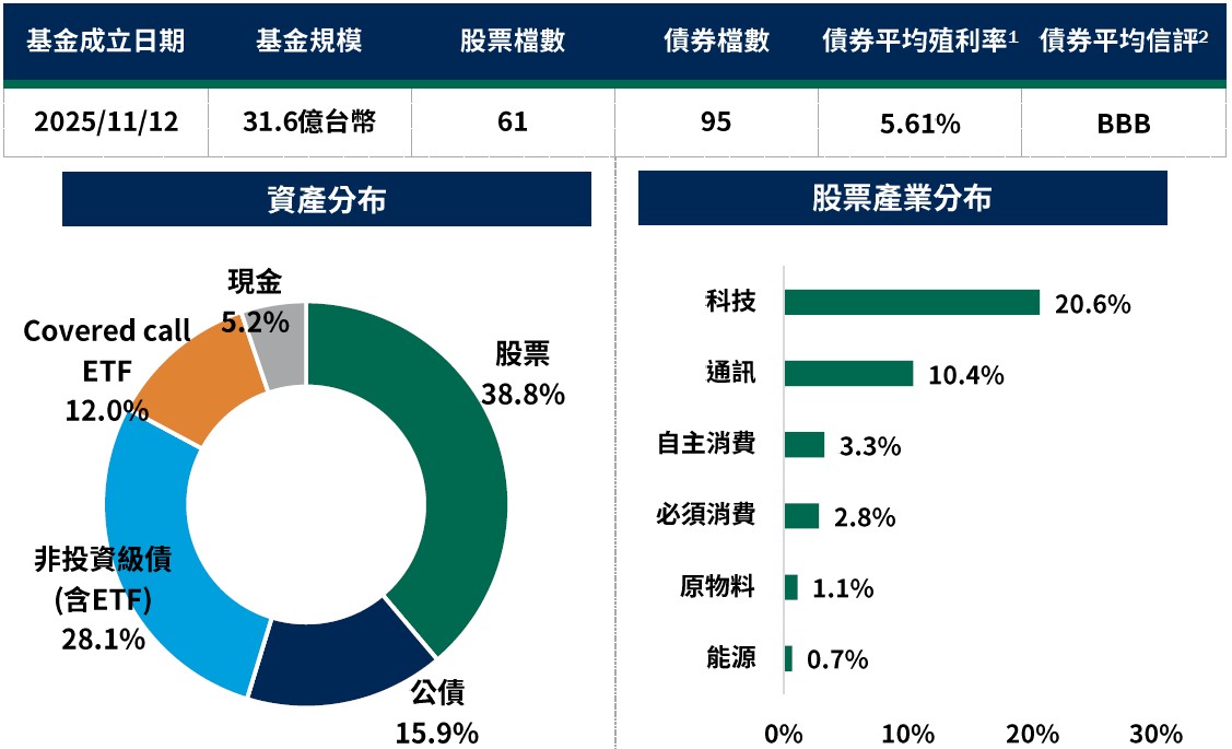 資料來源:柏瑞投信,2025/11/30。配置會隨市況而改變,本公司不另行通知。本文所提及之有價證券,本公司無意藉此作任何推薦或徵求。投資人申購本基金係持有基金受益憑證,而非本文提及之投資資產或標的。