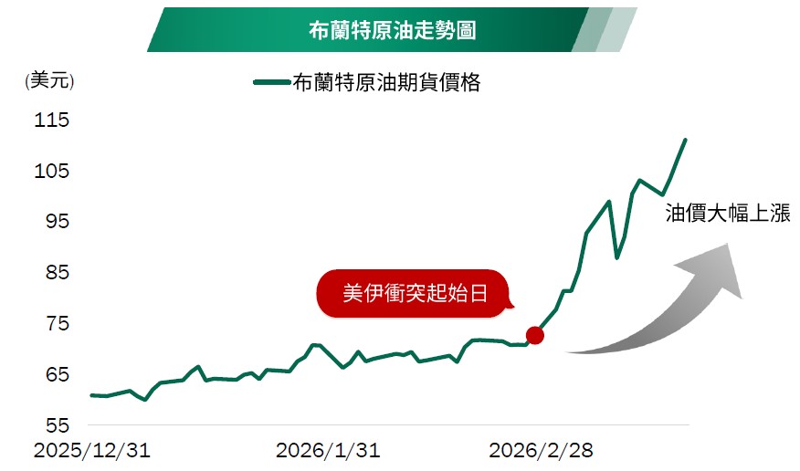 2026年2月底,美國與以色列對伊朗發動軍事行動,導致中東局勢急遽升溫。伊朗隨後干擾荷姆茲海峽運輸活動,使全球能源供應出現明顯緊縮,推升油價大幅上行。能源價格飆升不僅加劇通膨壓力,也對全球經濟前景帶來不確定性。