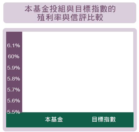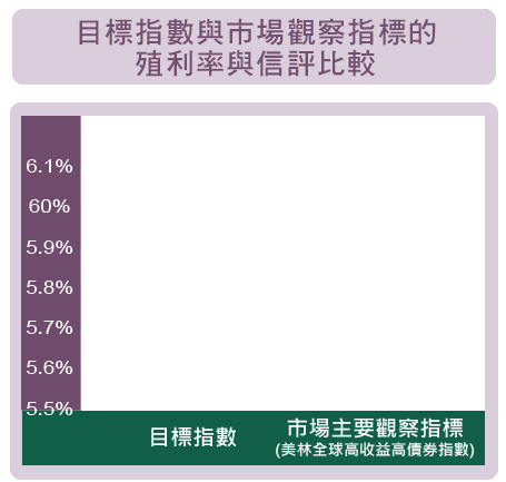 目前在相同信評水準下,基金所追蹤之目標指數的殖利率水準已高於市場指標,而受惠於投資團隊良好的選債功力,本基金雖持債水位較低,但仍能保持在相同或較高平均信評水準下,相對高於目標指數的殖利率水準。