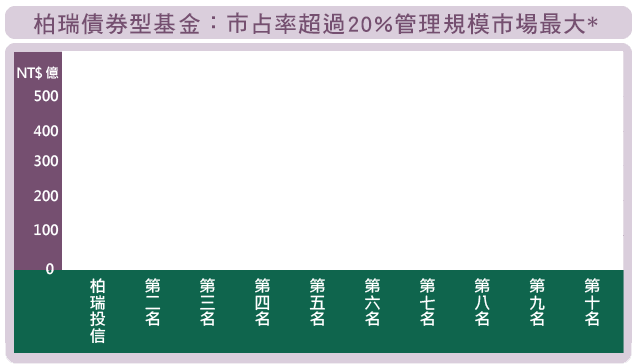 就在堅持做對的事的毅力下,順利打開境內高收益債券基金的新天地,2008/08/01 首檔以新台幣計價、月配息級別的「境內高收益債券型基金」- 柏瑞全球策略高收益債券基金基金- (本基金主要係投資於非投資等級之高風險債券且配息來源可能為本金)正式成立,如今柏瑞投信為全台38家投信中固定收益型基金管理規模最大的基金公司,旗下固定收益型基金規模合計約新台幣491億(下圖),其中柏瑞全球策略高收益債券基金(本基金主要係投資於非投資等級之高風險債券且配息來源可能為本金)更穩坐境內債券型基金的「基金王」寶座。