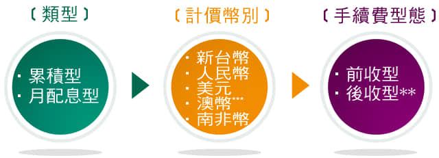 提供新台幣、人民幣、美元、澳幣與南非幣的累積、月配息級別,後收型**首創境內零分銷費,期滿三年後免手續費,滿足投資人多重資金配置需求。