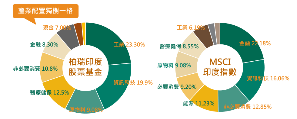 MSCI印度指數涵蓋股票全面,指數成分股含74檔個股,本基金雖以MSCI印度指數為基準指數,但不一味追蹤指數分配,主動操作優勢顯而易見。