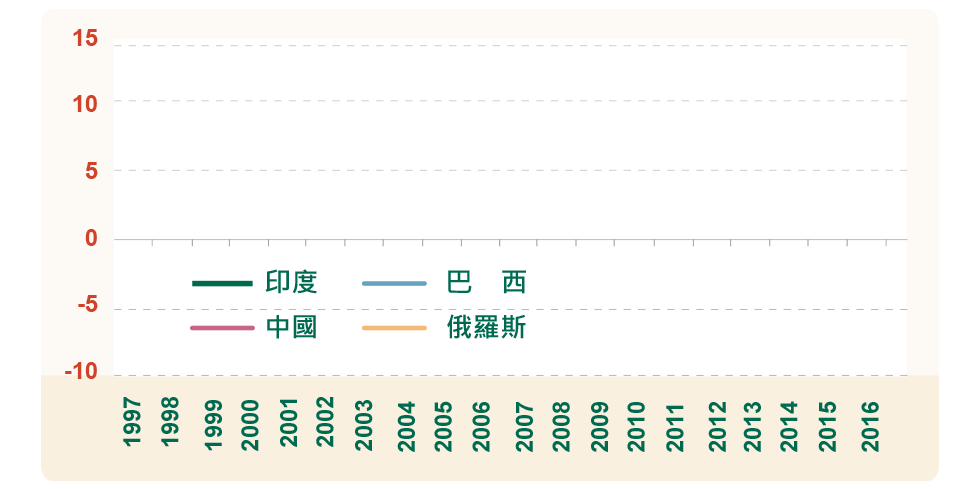 印度GDP經濟成長率在2015年超越中國,成長速度已居於金磚四國國家之首,未來在多項政策改革下,印度經濟有望維持強勢。