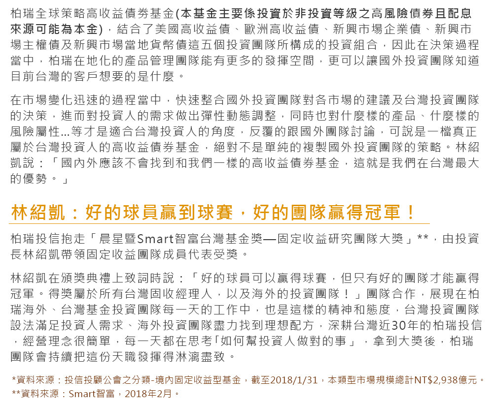 (本基金主要係投資於非投資等級之高風險債券且配息來源可能為本金) |