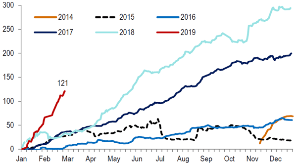 圖文僅供參考,過去的績效不代表未來收益之保證,本公司未藉此作任何徵求或推薦。資料來源:CITI Research CEIC 2019/02/28。