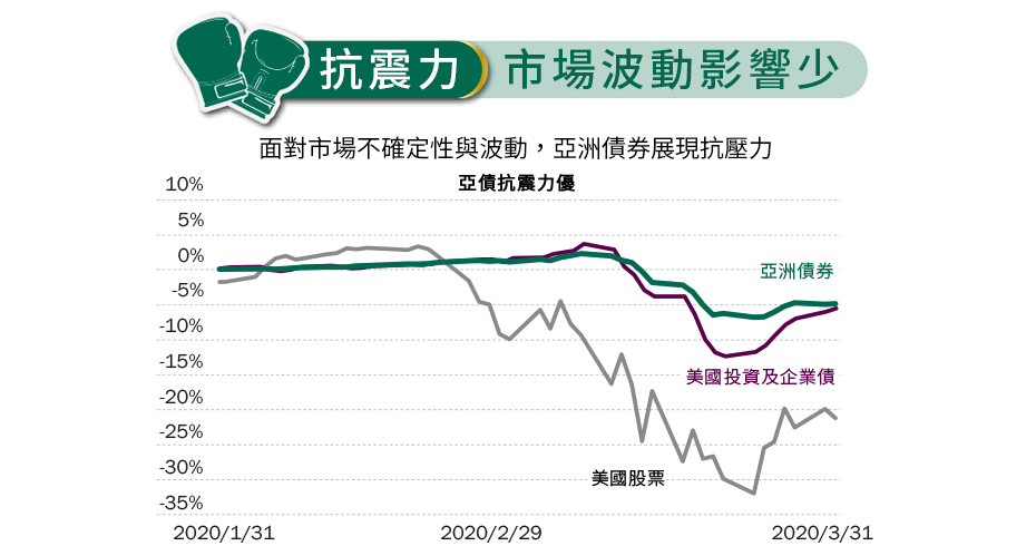 新冠疫情陰影籠罩全球,各國央行購債與紓困規模前所未見,為債市注入資金活水,而美國聯準會(FED)維持近乎零利率更持續至2022。低利時代,亞洲經濟率先復甦*成為焦點,價格上漲機會具吸引力,增添報酬力表現機會,且面對市場不確定性亞債擁有抗震力,為投資效率展現好實力!
