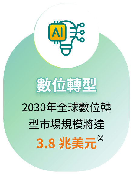 資料來源:PineBridge Investments,柏瑞投信整理,2022/10 。(1) Precedence Research,2022/8。(2)Research and market,2022/3。(3) Precedence Research,2022/8。(4) World Economic Forum,2021/1。(5) Grand View Research,2022/9。圖文僅供參考,本公司未藉此作任何徵求、推薦及獲利之保證。投資人仍須視己身風險承受度。投資人申購本基金係持有基金受益憑證,而非本文提及之投資資產或標的。