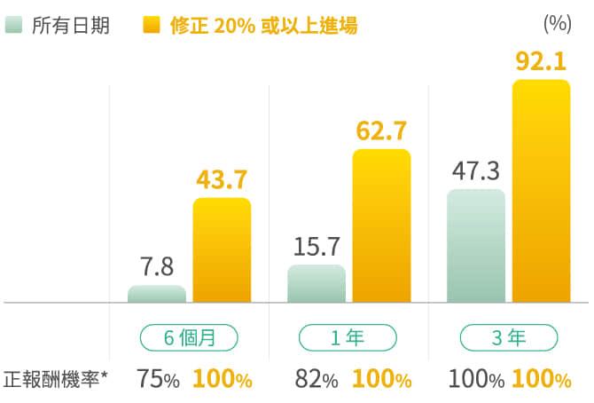 2022年初以來市場大幅修正,反而造就難得布局的好機會,在市場修正時布局,中長線的報酬表現更好。