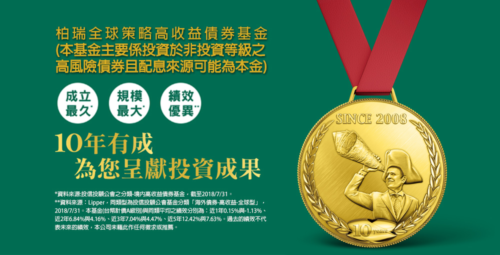 2008年8月,全台灣第一檔高收益債基金誕生,是柏瑞投信專為台灣人設計的固定收益產品。