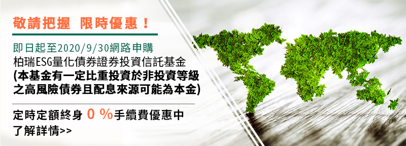 柏瑞投信於2020年1月率先在台灣推出首檔以「ESG因子+量化策略」的全球投資級債券基金-柏瑞ESG量化債券基金(本基金有一定比重德投資於非投資等級之高風險債券且配息來源可能為本金),引領台灣基金市場的「ESG投資」風潮,規模達161億元***。