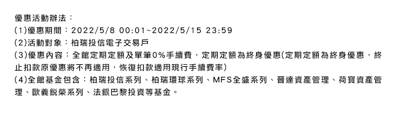有關基金應負擔之費用(境外基金含分銷費用及反稀釋費)已揭露於基金之公開說明書或投資人須知中,投資人可至柏瑞投資理財資訊網或公開資訊觀測站中查詢。本公司及各銷售機構備有公開說明書,歡迎索取,或經由柏瑞投資理財資訊網查詢。 本文提及之經濟走勢預測不必然代表本基金之績效,本基金投資風險請詳閱公開說明書。有關基金應負擔之費用已揭露於基金之公開說明書中,投資人可至前述網站查詢。