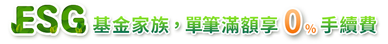 •優惠內容:凡第三季網路申購ESG家族的基金(台幣級別)任一檔,單筆10萬以上享0%手續費(不得累計)。